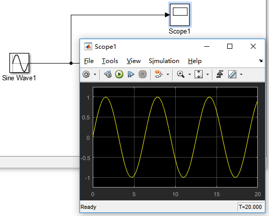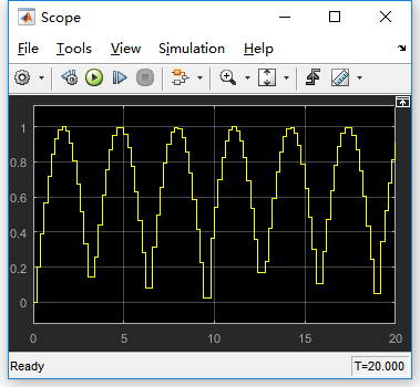 再拖一个示波器,看看sine波形也是连续的: