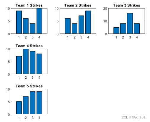 labels = {'Team 1','Team 2','Team 3','Team 4','Team 5'};