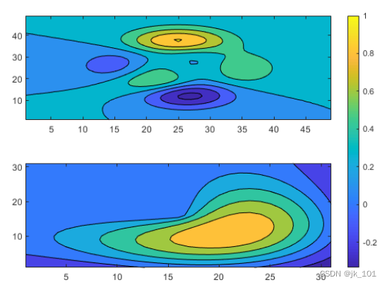 nexttile 输出参数的一个有用的用途体现在您想调整前一个图块中的内容时。例如,您可能决定要重新配置先前绘图中使用的颜色图。