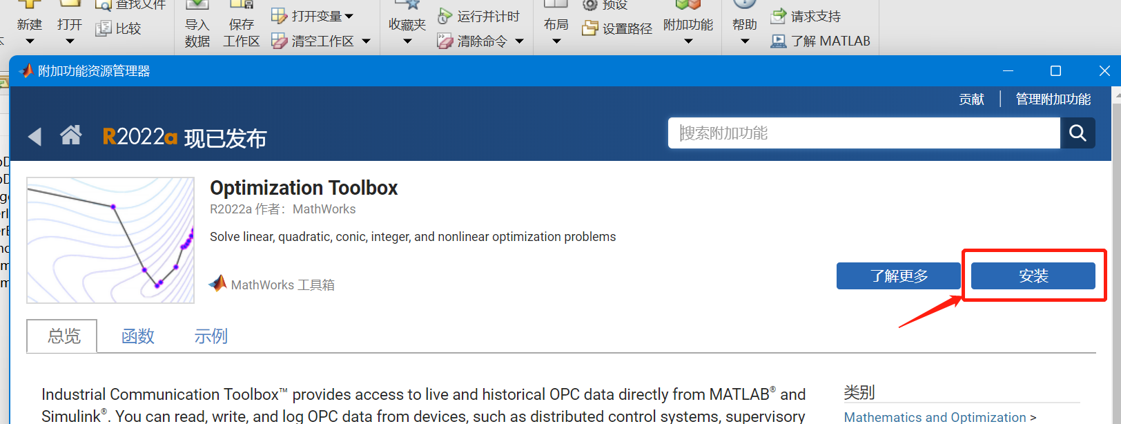 今天使用matlab时出现了如下报错(为了重现纠错过程我删了装好的包,重新安装),我使用的函数是optimoptions,其他的也是一样的。