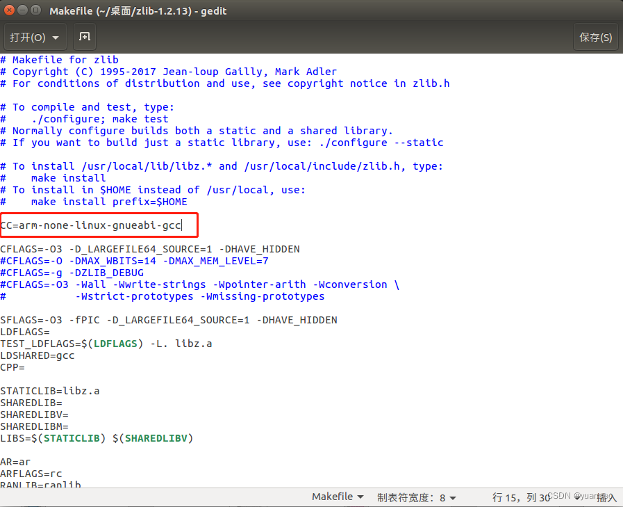 裁剪完后,会生成一个makfile文件,打开mkfile文件,将编译器改为arm-none-linux-gnueabi-gcc
