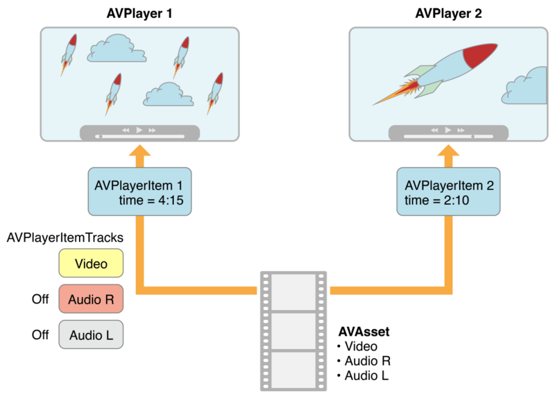 这表明你可以同时用不同的player播放同一个asset,如下图显示,两个不同的player播放同一个asset。