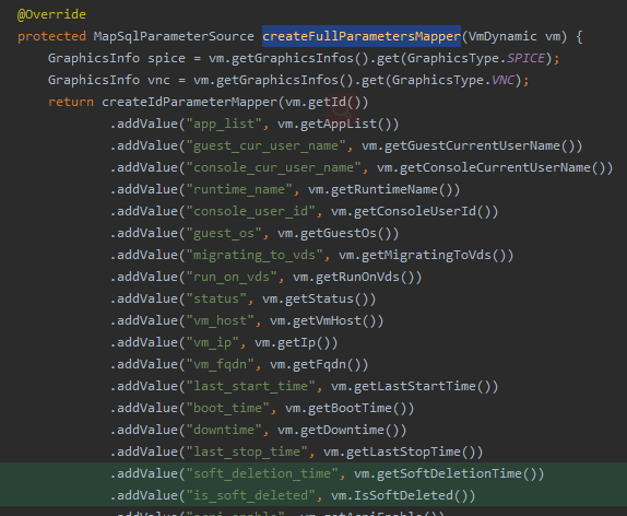 同理还有数据库接口的实现类org/ovirt/engine/core/dao/VmDynamicDaoImpl.java