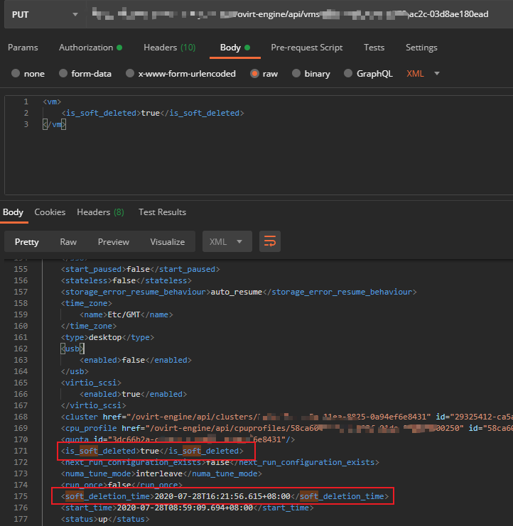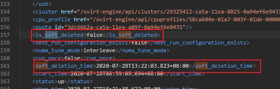 背景:基于ovirt-engine二次开发,为实现软删除功能,对现有的vm接口进行扩展字段,增加判断软删除字段以及软删除的时间字段。