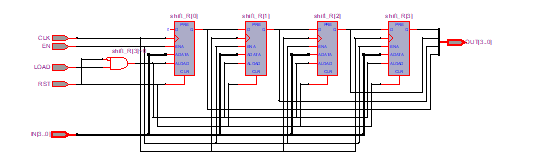 设计一个如本节“电路描述”部分的“带加载使能和移位使能的并入串出”的移位寄存器,电路的RTL结构图如“电路描述”部分的RTL结构图所示。