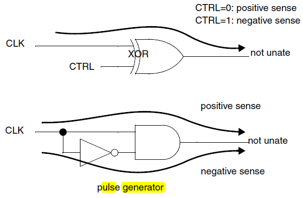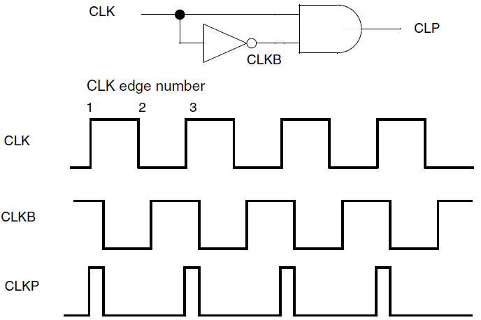 pulse clock:一些短的pulse,它的rising和falling edge都由一个clock的同一个edge来trigger。