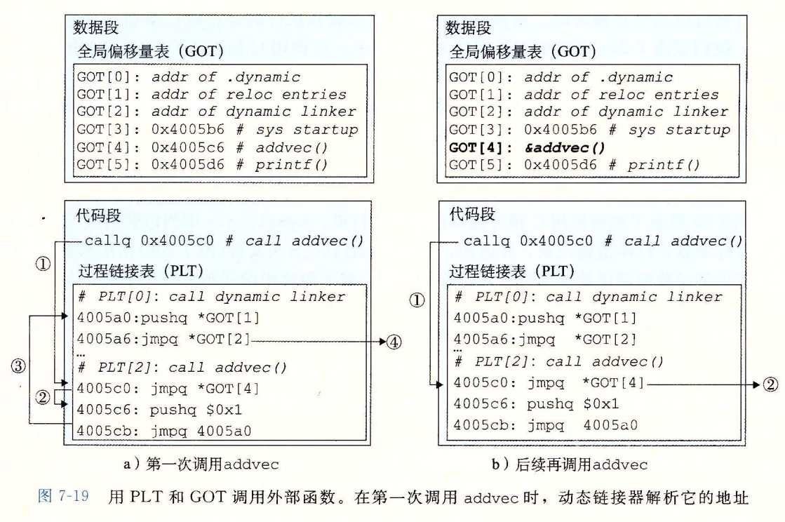 动态链接的形式大概是这样的(图来自《深入浅出计算机组成原理》):