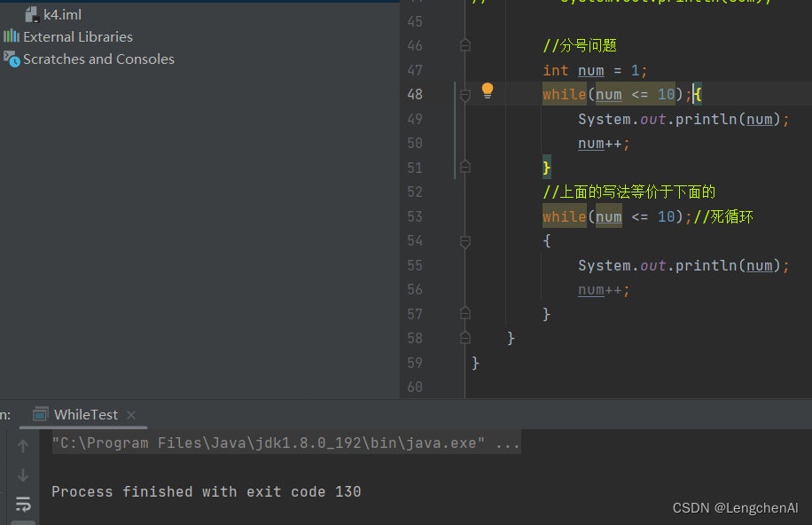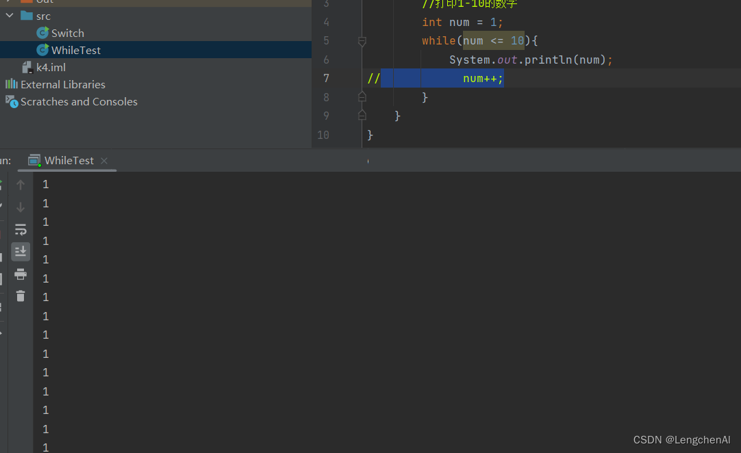 注意2:要注意循环终止的条件,不要忘记更新循环终止的条件进而造成死循环。错误实例如下
