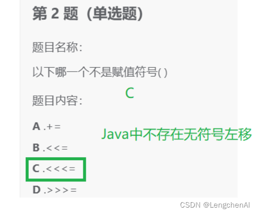 增量运算符:java中不存在无符号左移,因此没有<<<=
