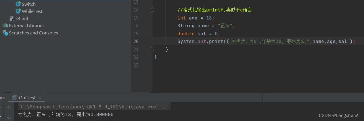 C. 格式化输出:System.out.printf();