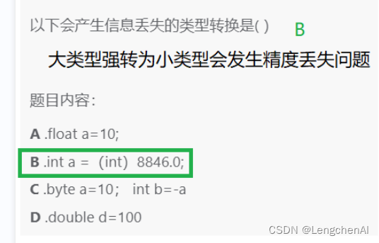 解析:大类型转为小类型会发生精度丢失问题