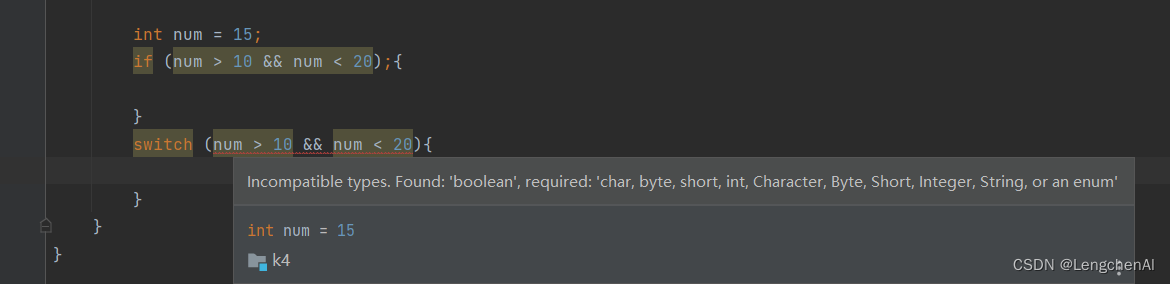 注意1:switch的表达式不支持布尔表达式形式,只支持一个变量。因此switch分支能实现的if...else分支一定能实现,反之不一定