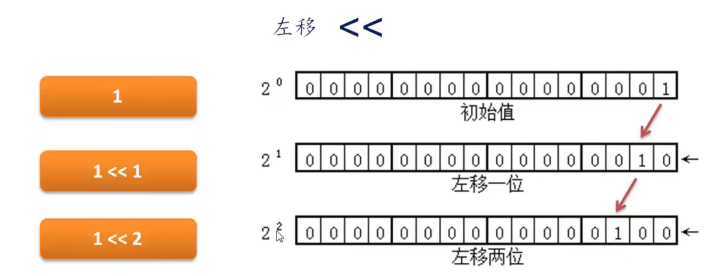 1<<2:1左移2位,将1的二进制位所有的往左移两位