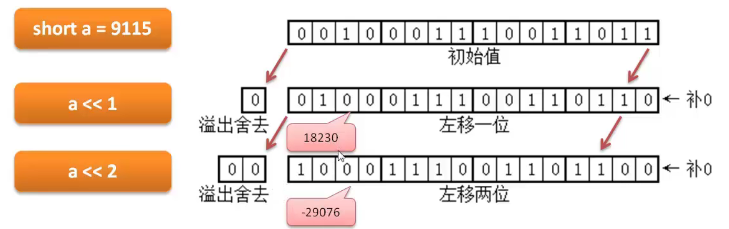 同样,short a = 9115,左移1位,左移2位。