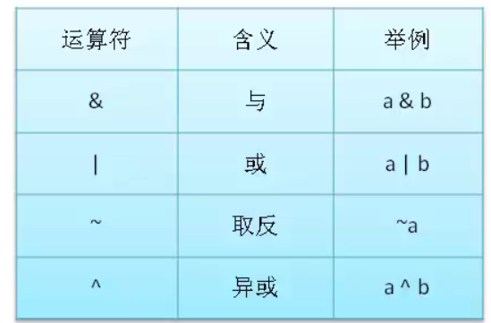 那么位逻辑运算符怎么计算的呢?先看下位逻辑运算参照表: