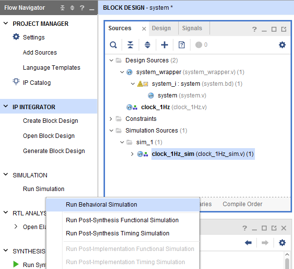 1. 建立工程后,添加源文件,本文以一个非常简单的模块——生成1Hz方波,进行说明。