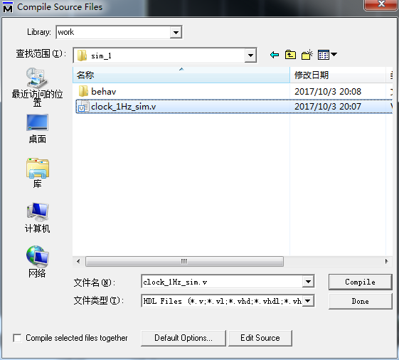 出现这种情况是因为软件没有找到源文件,手动将源文件加入到编译路径的work中,点击compile,选择源文件,加入到work目录中。