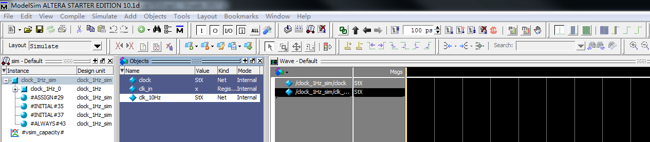 点击仿真工具进行仿真,SIMULATION->Run Simulation->Run behavioral Simulation。