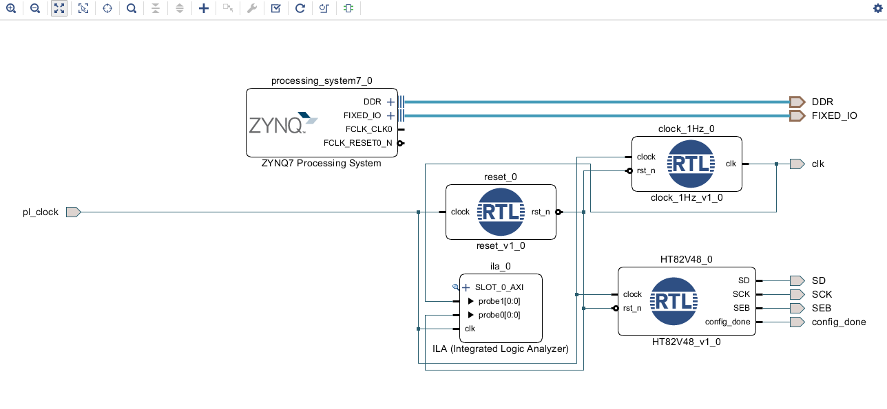 3. 在原理图中进行连线,clk信号必须要连接到时钟上,展开SLOT_0_AXI,连接需要观察的信号到这些端口上,软件会自动例化代码。