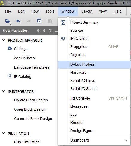 5. 打开逻辑分析仪窗口: 点击菜单Window->Debug Probes