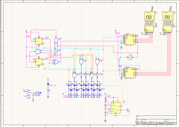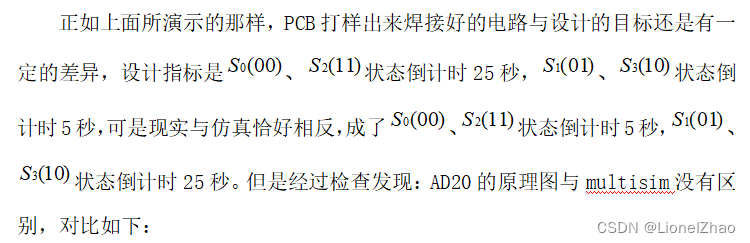 (实际上是与原先的设计目标不相符的,时序恰好相反了,但是AD20的原理图是在multisim上仿真成功之后绘制的,一摸一样,理论上应该跟仿真结果一样才对)
