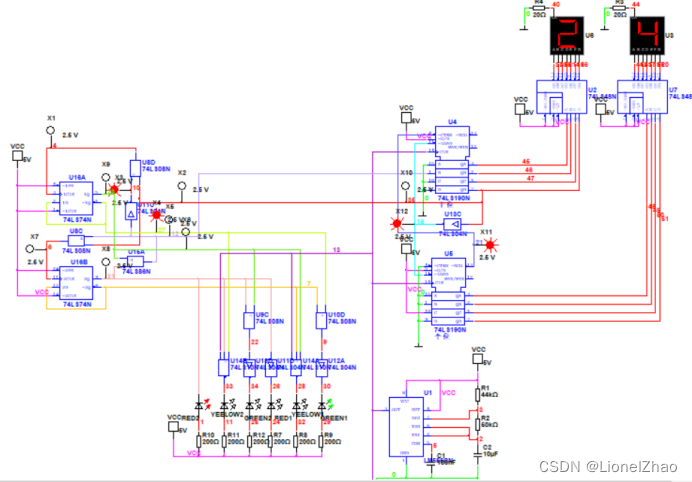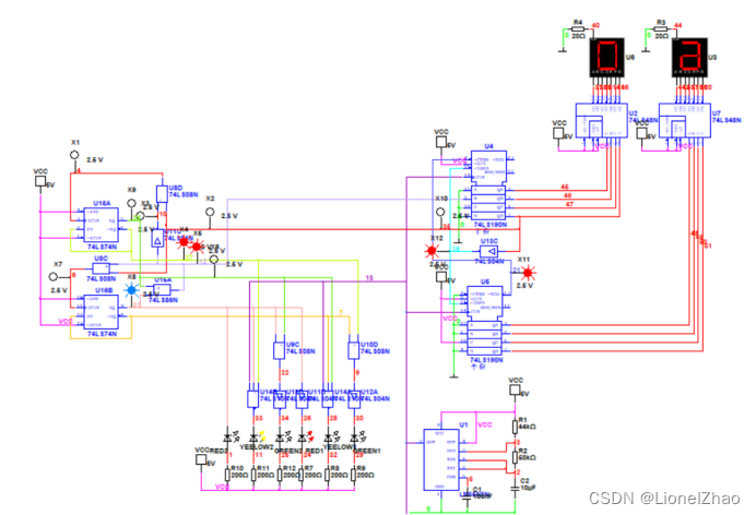 虽然没有最终找出问题的来源,但是第二版PCB相比于第一版来说,红绿灯控制逻辑正常、倒计时计数正常,只是两者没有对应,这个问题有待进一步改进。