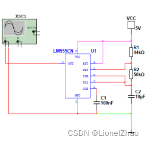 将NE555独立测试,周期为998.17ms,近似为1s,满足设计指标。
