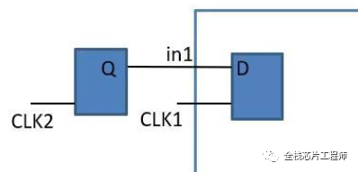 比如,在set_propagated_clock命令后,下图左边寄存器的CLK1端就不带clock propagation time,而CLK2(与CLK1同频同相)就带insertion delay, 拥有时钟latency,这样输入IO的hold违例就可能发生,setup反而更容易满足。