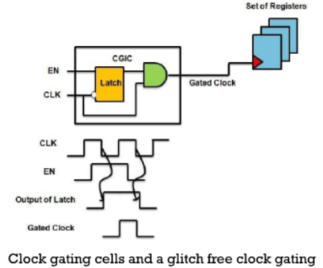 - Gating cell的输出是作为时钟信号进行使用,即连接到了后级逻辑单元的时钟端口。