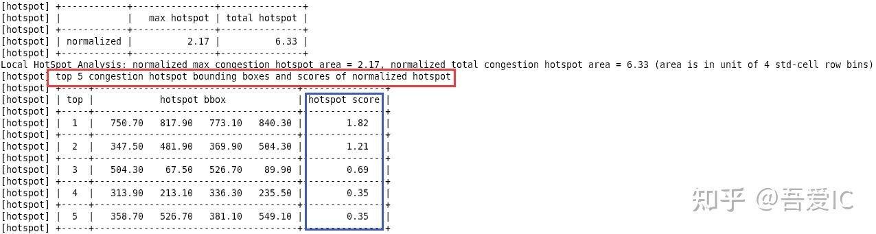 hotspot表征的是设计中congestion的热点,它是用面积来表示hotspot的分数。如果这个分数越高代表的是这个位置有congestion的点比较多。所以这个位置附近就有比较聚集的congestion问题。