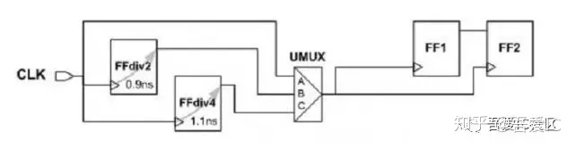 若直接将 CLKmux, clkdiv2_mux, clkdiv4_mux 省略,然后分别在MUX/Y端定义三个generated clock,其 source 设定为CLK, CLKdiv2, CLKdiv4,也是可以的。