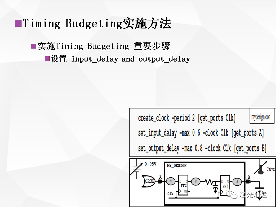 - Timing budgeting 要求真实客观,在满足芯片正常工作的前提下,最大限度的压缩时间开销