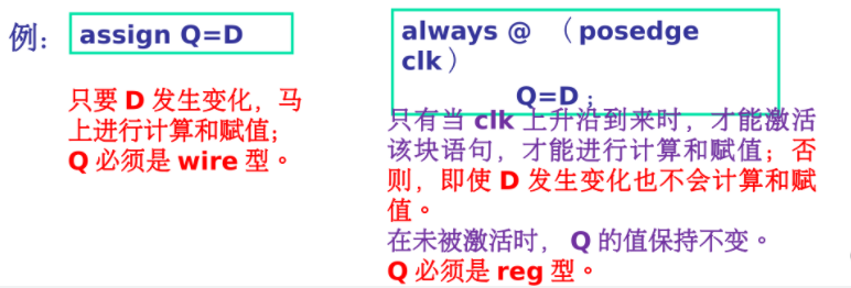 - verilog规定assign 中的赋值目标必须是wire型的,而always语句中的赋值目标必须是reg型的。