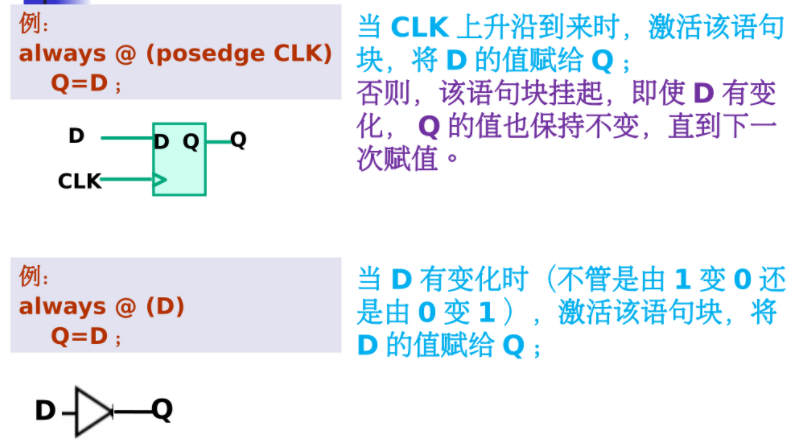 - always过程赋值语句只有当激活该过程时,才会进行计算和赋值,如果该过程不被激活,即使操作数发生变化也不会计算和赋值。