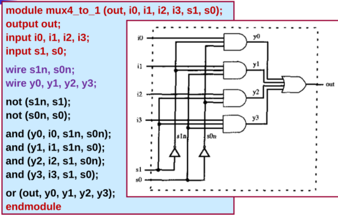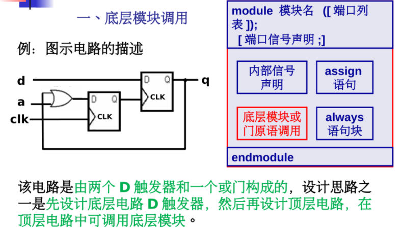 - 结构化描述(也称门级描述) (全部用门原语和底层模块调用)