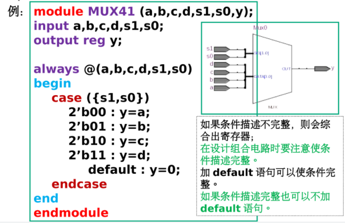 在用if语句设计“组合电路”时要注意,如果条件不完整,会综合出寄存器