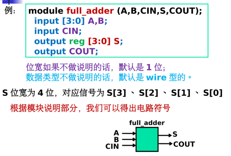 - 对于端口信号来说,input信号和inout信号必须定义成net 型的; output信号可以是net型的也可以是variable型的,决定于如何对其赋值(同1)