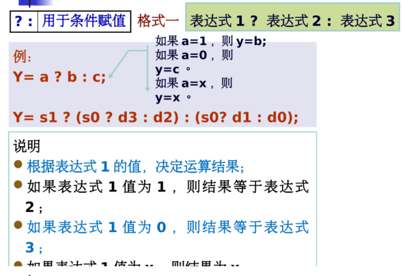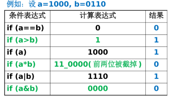 条件表达式的结果只有0和1两种,如果计算表达式的值为0,则条件表达式的值为0,否则为1 。