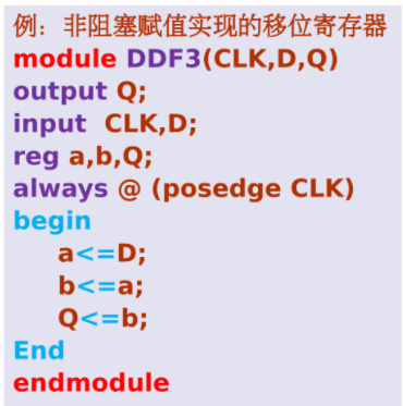 - 非阻塞赋值的实质:按顺序计算右边表达式的值,但是并不马上赋值,而是要等到过程结束时再按顺序赋值