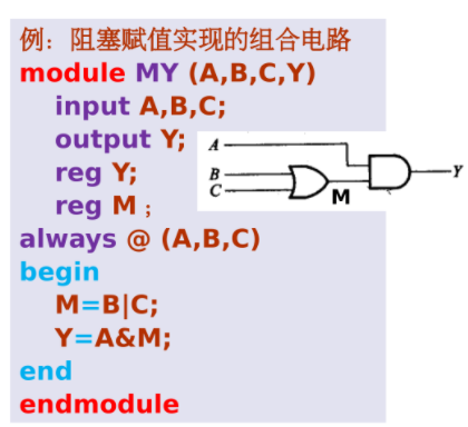 - 设计组合电路时常用阻塞赋值;