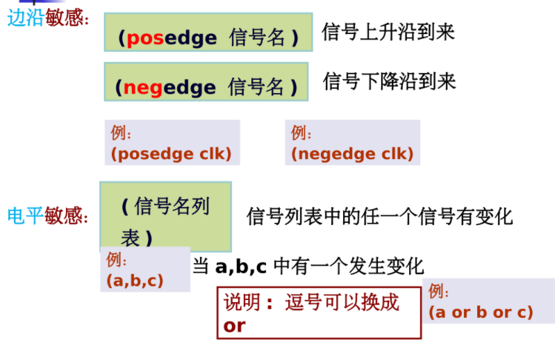 - 由于always语句可以描述边沿变化,在设计时序电路中得到广泛应用。