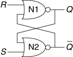 在数字电路里面,SR锁存器是最简单的时序单元,它由一对交叉耦合的或非门构成,如下所示: