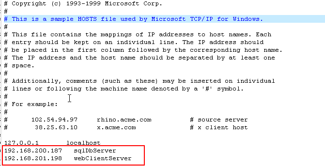 d) 可以修改%windir%/system32/etc/hosts,或%windir%/system32/etc/lmhost.sam去掉文件扩展名,进行DB服务和IP的绑定即可,如下图所示: