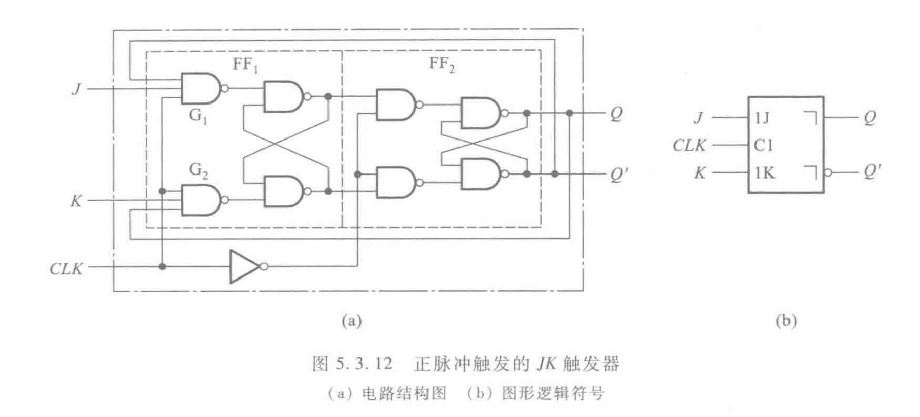 (2)因为主触发器本身是一个电平触发SR触发器,所以在CLK=1的全部时间里输入信号都将对主触发器起控制作用。