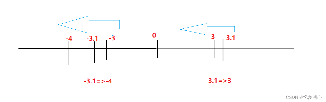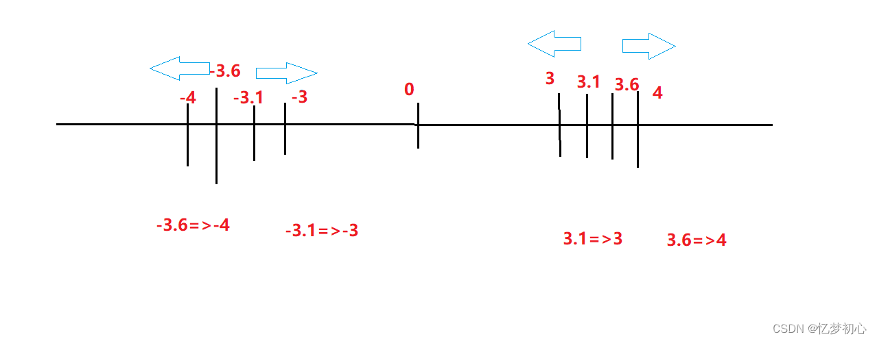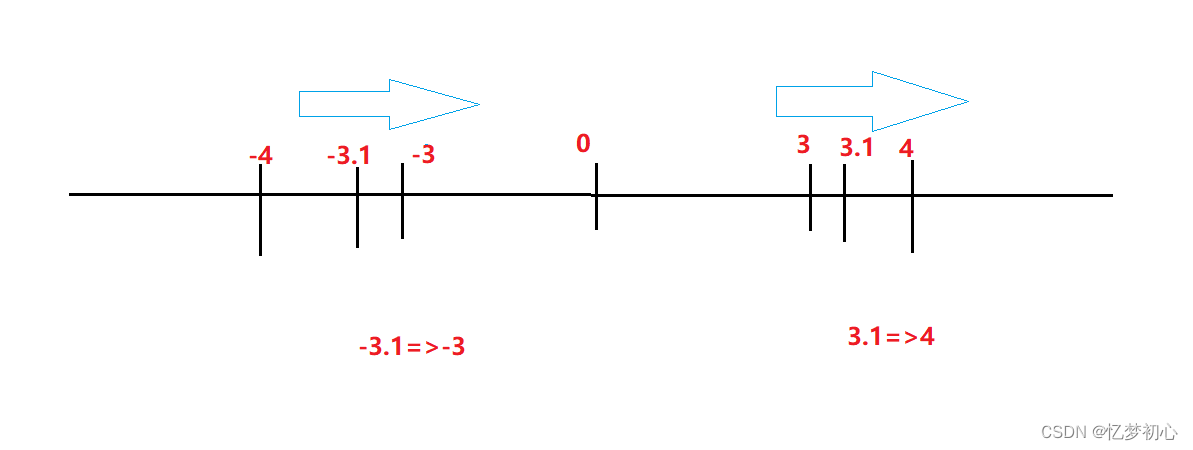 对于向零取整,顾名思义就是向靠近0的方向取整,如下: