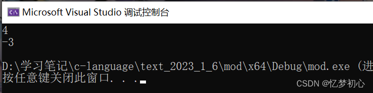 2.在C语言中,当商为负数时,取余和取模不同;当商为正数时,取余和取模等价。