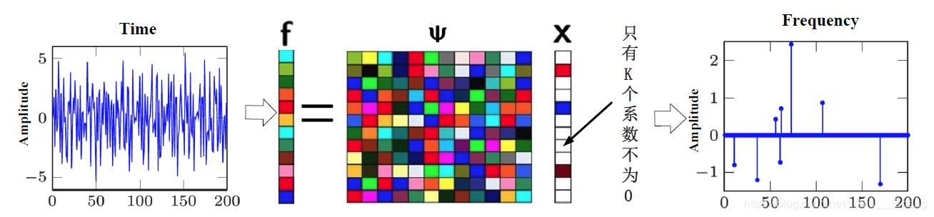 对于N维的信号f,可以表示为一组正交基向量Ψ的线性组合:
