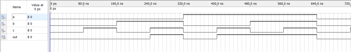 3'b01x: out = c; //有1个1和1个0,表决结果取决第三个