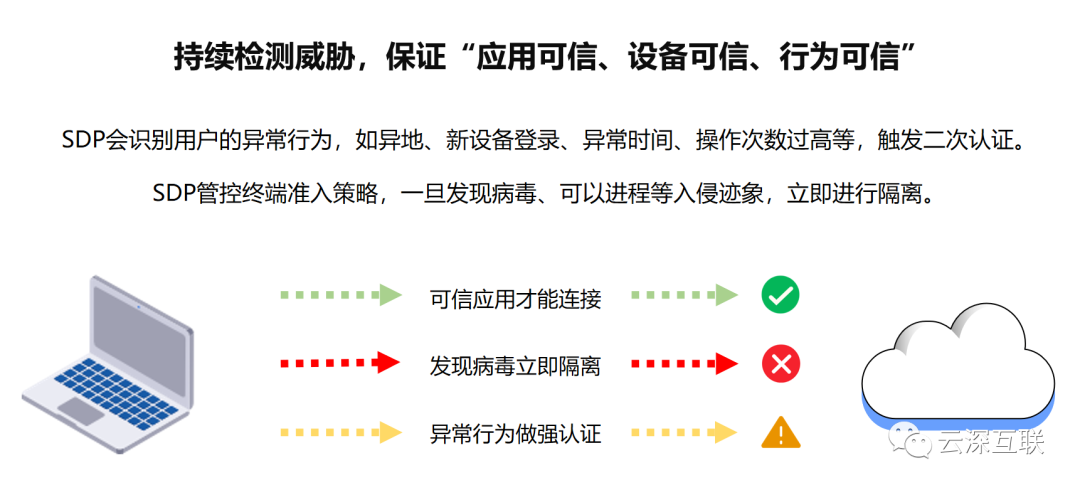 1)零信任访问:实现所有用户接入前统一认证,即先认证、再连接,隐藏应用减少攻击面。