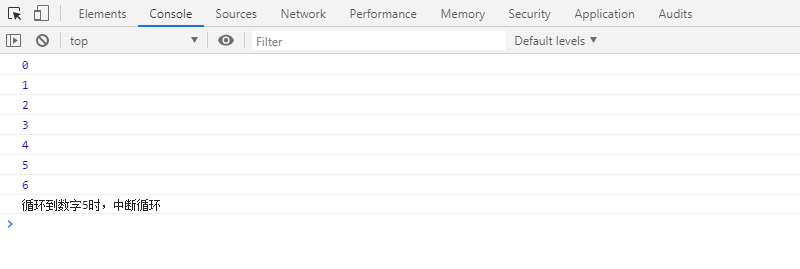console.log("循环到数字5时,中断循环");